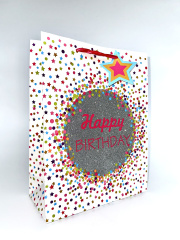 Пакет подарочный, Happy Birthday, Конфетти, Серебро, 1 шт.