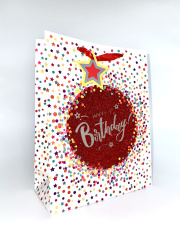 Пакет подарочный, Happy Birthday, Конфетти, Красный, 1 шт.
