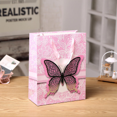 Пакет подарочный, Бабочка, Розовый, 32*25*11 см, 1 шт.