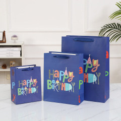 Пакет подарочный, Happy Birthday, Синий, 26*10*32 см, 1шт.