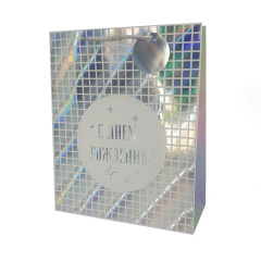 Пакет подарочный "С днем рождения! Голография. Квадраты"