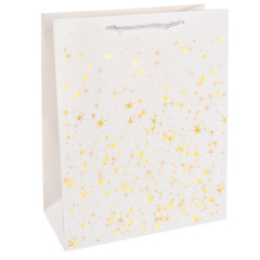 Пакет подарочный, 210гр, Тысячи созвездий, Дизайн №4, Белый/Золото, 70*50*20 см, 1 шт.